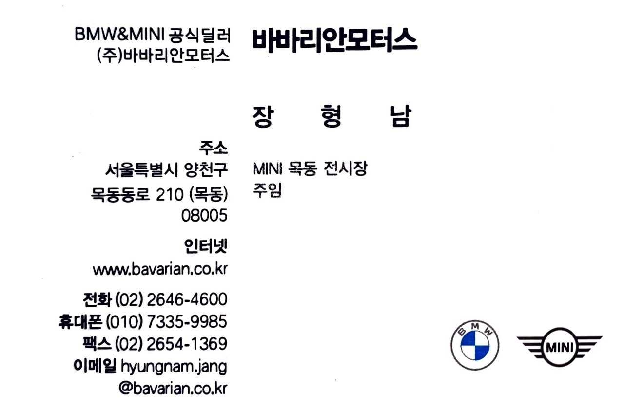 안녕하세요. 미니 목동전시장 장형남 주임입니다. 미니에 관한 모든것들 상담드리도록 하겠습니다. 편하게 문의주세요 !! #미니쿠퍼, #목동미니