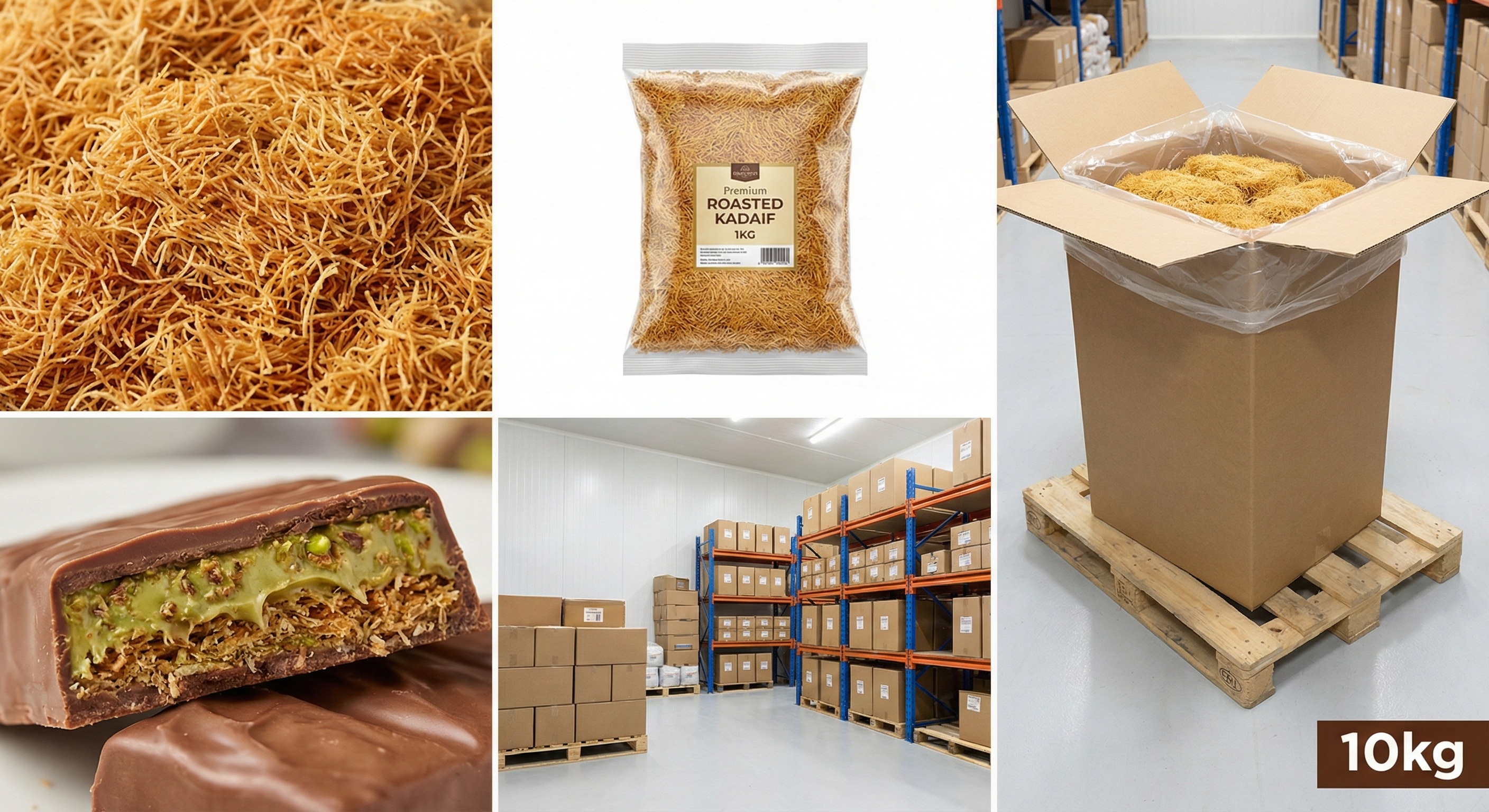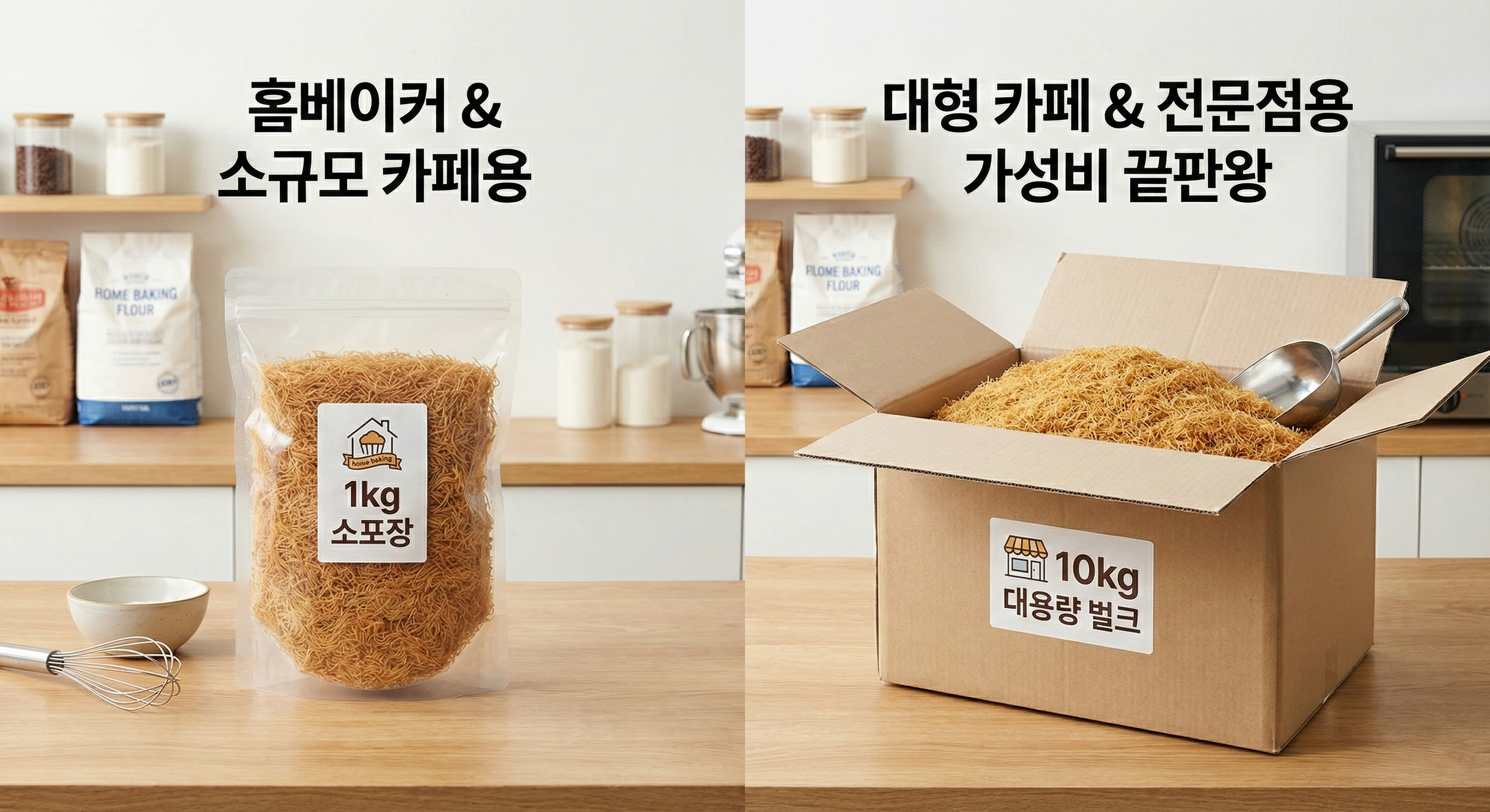 - 10kg 대용량 벌크 : 카다이프 사용량이 많은 베이커리 공방, 대형 카페, 디저트 전문점