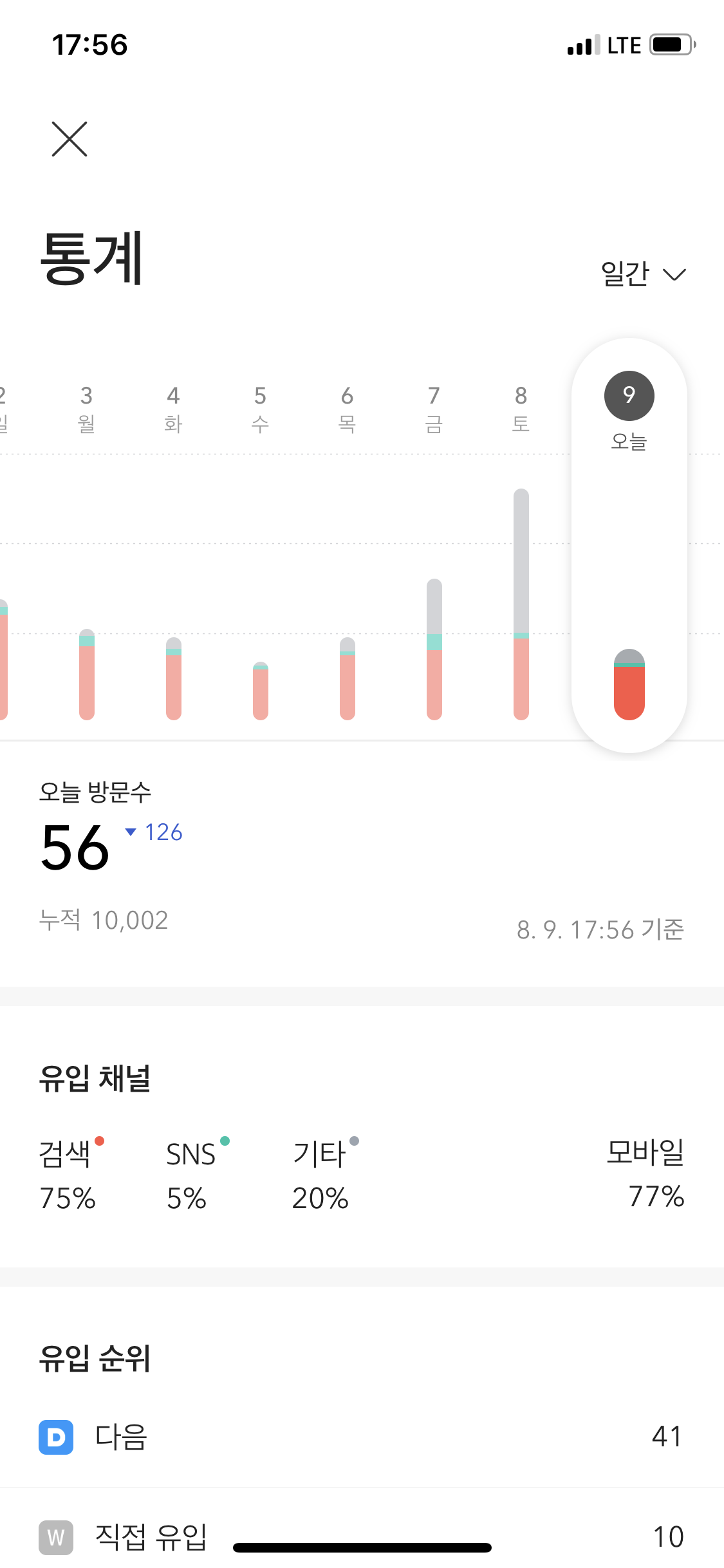 일 평균 20~30명 정도의 방문자수만 나와도 많이 나올때죠.