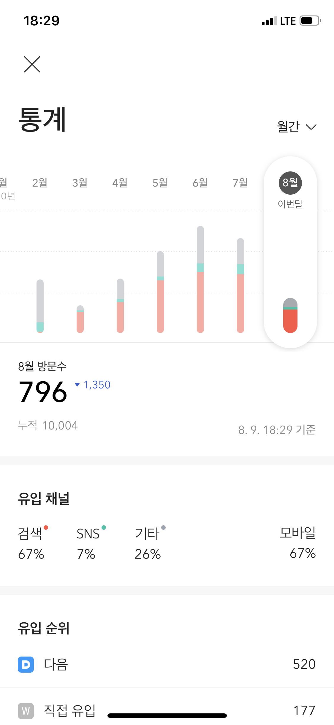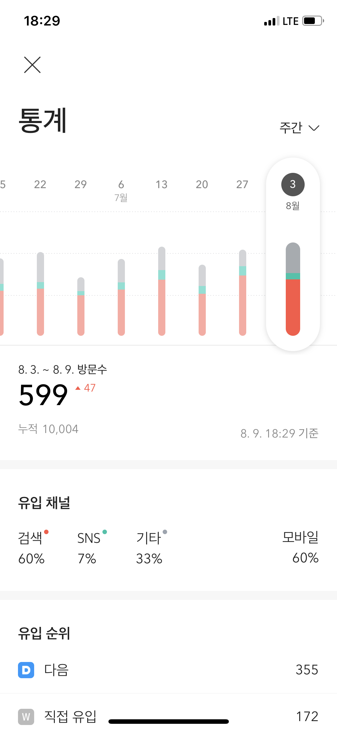 초반에는 방문자 수가 현저히 낮았습니다.