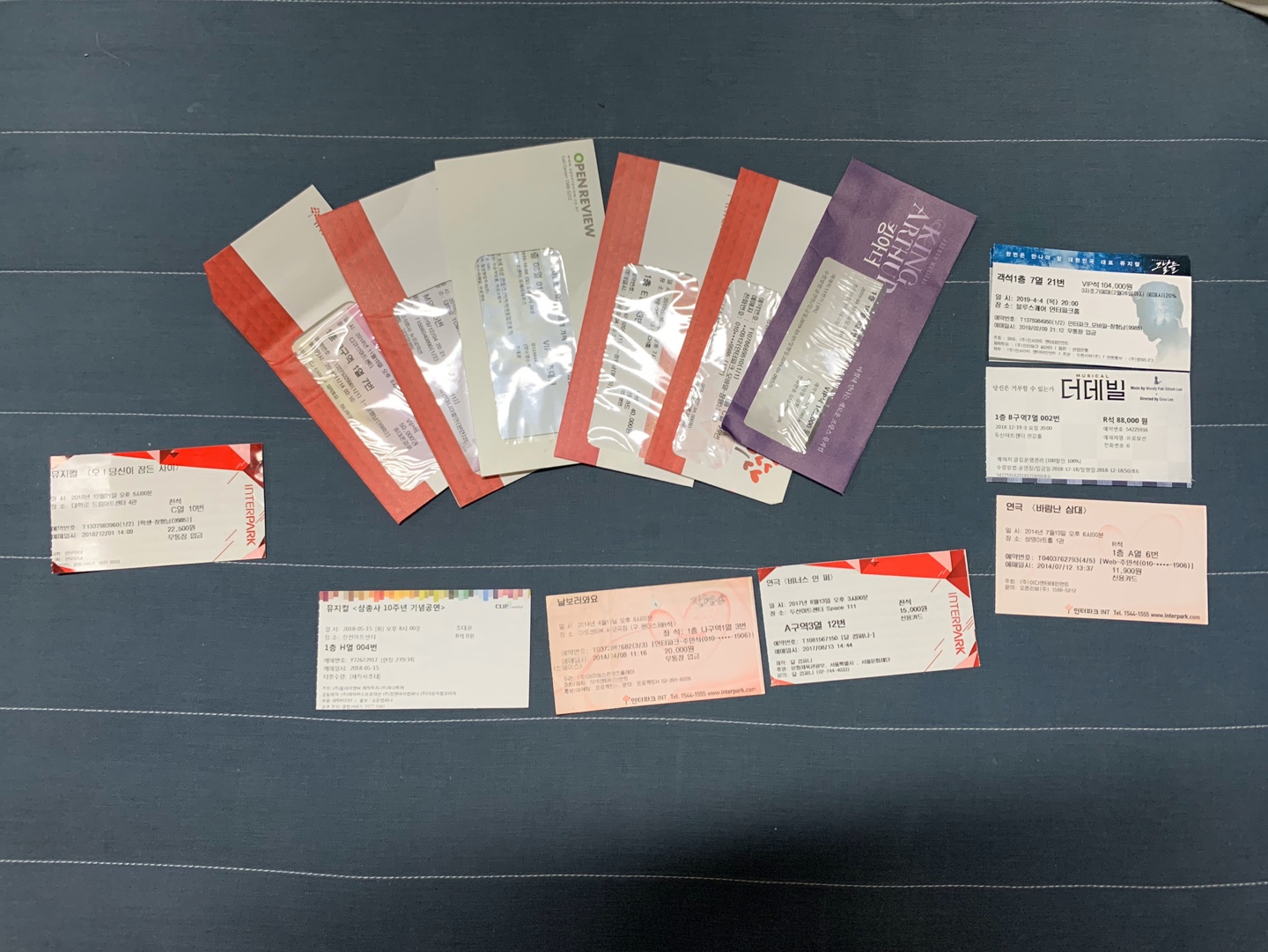 정말 많은 작품을 본 것 같은데.. 모든 티켓을 모아두지는 못한 것 같아요.
